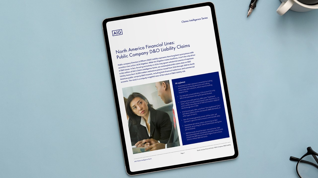 AIG Financial Lines has more than six decades of experience providing management liability, professional liability, and mergers and acquisitions insurance solutions for public companies, private and non-profit organizations, financial institutions, and professional service providers of all sizes. Through constant collaboration between underwriting and claims, our extensive knowledge, resources, and data enable us to tailor coverage solutions that address our clients’ current and emerging risks. AIG’s financial strength, integrated claims model, and proven claims expertise ensure that we are there, helping to drive the best possible outcome for our clients.